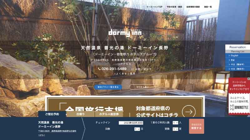 全国各地に展開する、「天然温泉 善光の湯 ドーミーイン長野」は、利用者の立場に寄り添ったサービスが好評のビジネスホテルです。